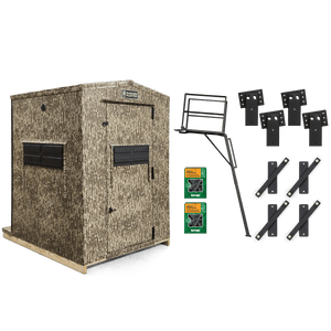 Optimized for hunting in all seasons with a variety of weapons, the Shadow Hunter 6X6 Octagon Combo is our best-selling blind year after year. This blind is the perfect size to accommodate hunting with friends and offers three different window sizes to accommodate 360 degrees of gun, crossbow, and compound bow hunting.