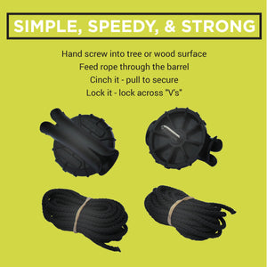 Includes two (2) Timber Cinch mounts and two (2) 10’ nylon braided cords